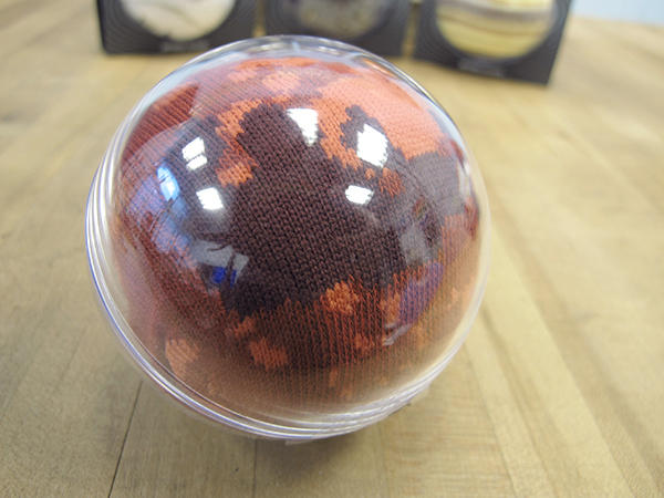 打開亮晶晶的透明球狀外殼,被包得圓圓像是章魚燒一樣的襪子就在裡面,打開襪子可以發現這內裏有加厚的毛巾底料子,比起一般裝飾性為主的薄襪子來說,更兼具功能保護性及透氣吸汗,襪底還印有小小的 25TOGO DESIGN 字樣,整體來說是一雙富有實際穿搭效果以及多功能的造型襪。