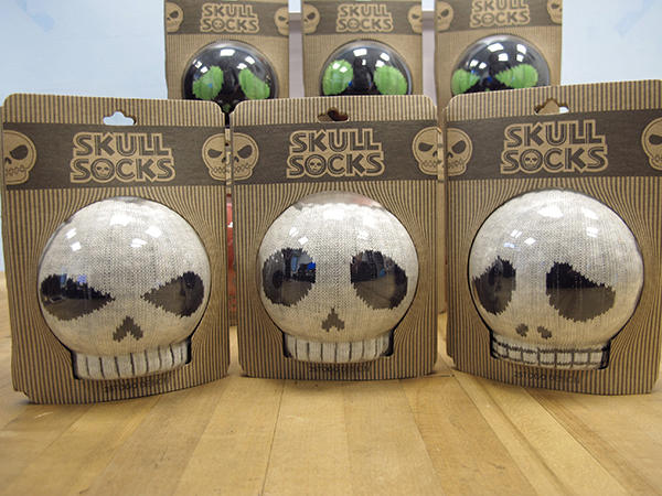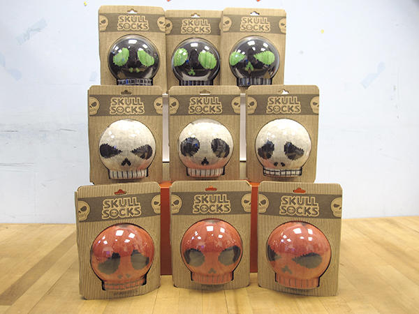 骷髏頭球襪大致上可以再細分為三個款式,除了顏色上的不同之外,還有上面的表情也很不一樣: 呆呆臉、哭哭臉和兇兇臉,每種表情都有三種配色,這麼可愛的骷髏頭臉應該會讓人怕套不回去,捨不得拆開來穿吧!(請注意,穿起來後的骷髏頭圖案會顛倒喔!)