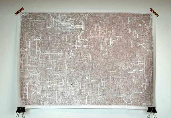 來自日本的網友@Kya7y前陣子在自己的Twitter頁面貼上幾張看起來密密麻麻的照片,這些照片不但引起許多網友的熱烈討論,甚至還和日本網站Spoon&Tamago合作,將照片裡的東西商品化。原來這些像絲線一樣複雜的線條是出自@Kya7y的爸爸(以下稱@Kya7y爸)之手,是一張尺寸約A1大小(84.1公分x59.4公分)的手繪迷宮,除了擁有巨大的尺寸外,其花費的時間更是不可思議的久。