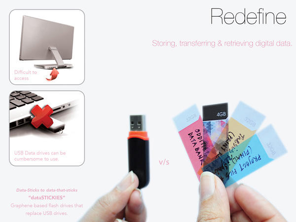雖然還只是在概念階段,這 dataSTICKIES 早就已經獲得 2013 年德國紅點設計獎,以後只要貼上撕下就可以取代插拔的動作,想想翻轉來翻轉去老是插不進電腦 USB 接口的景象說不定在沒多久的未來,就看不到囉!