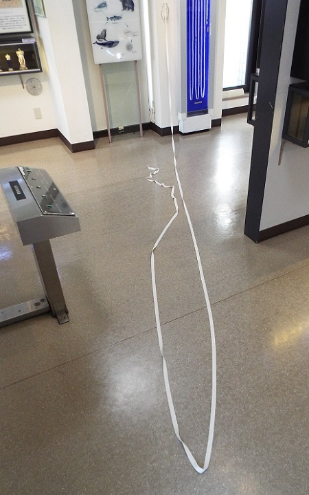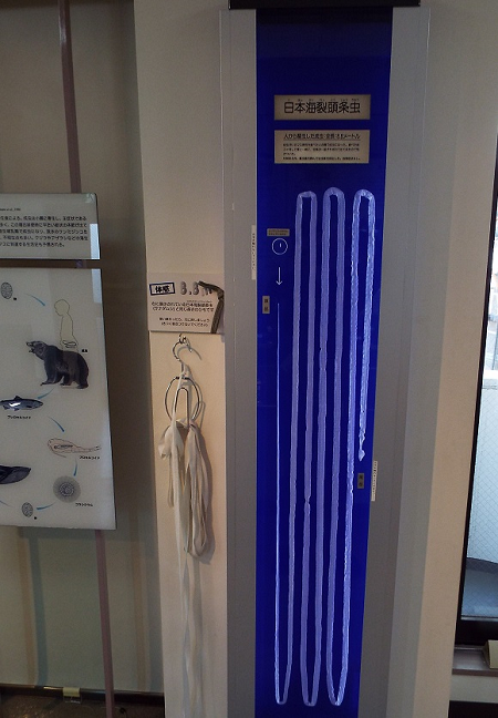 傳說中的條蟲先生,成蟲全長 8.8公尺,旁邊還貼心附上小蟲標本一枚,還有一條等長的繩子供遊客親手感受一下這驚人的長度,光是想像它蠕動的模樣,腦波弱一點的人可能會在這裡小小崩潰一下。