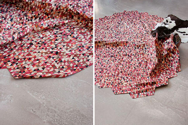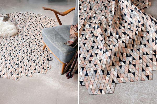 地毯在家居飾品中一直都占有很非凡的地位,如果你家的沙發、茶几都經過精挑細選,往往還是多少覺得少了什麼,這時候加上地毯,不止可以增加傢俱間的整體性,還可以赤腳隔離冰冰冷冷的地板,設計師 Elisa Strozyk 設計了一款有別以往我們看過的毛料地毯,採用了大量的三角形木片組合,讓這片地毯既有裝飾室內的效果,也有木質溫潤的感受。