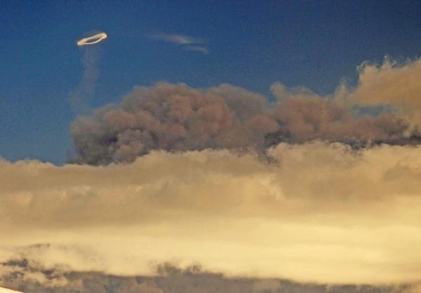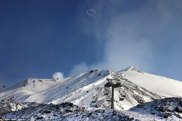 義大利西西里島上歐洲最大的活火山 Mount Etna 埃特納火山,在去年 11 月爆發後,最近一直時不時噴出煙圈,這些煙圈的直徑達 160 英尺(約 50 公尺),而且可以維持長達 10 分鐘,如果維持得夠久的話,甚至可以上升到半英里的高度(約 800 公尺),雖然目前還沒有科學家明確的解釋這個自然現象,但有些專家推論,或許是上一次猛烈噴發讓火山通風口的形狀改變,導致火山口內多了一個小開口,空氣和蒸汽被迫擠出,就成了像掛在天空中的魔戒一樣。
