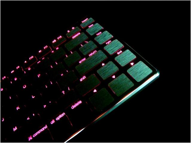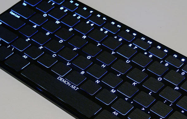 據說這個發光模組是廠商的獨家技術,也是其得意之作,亮度以及均勻度都優於其它鍵盤的發光方式,和一般見光死的發光鍵盤相比,就算白天燈光下也能有優秀的顯 光能力,雖然一般人根本不會知道原來發光均勻度也有其學問所在,但《DEMON ART》卻仍堅持於要讓每個細節都有最好的呈現,這等略帶偏執的念頭完全就像是個設計人,真想找他握個拳幫他打氣阿!