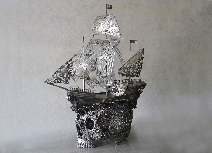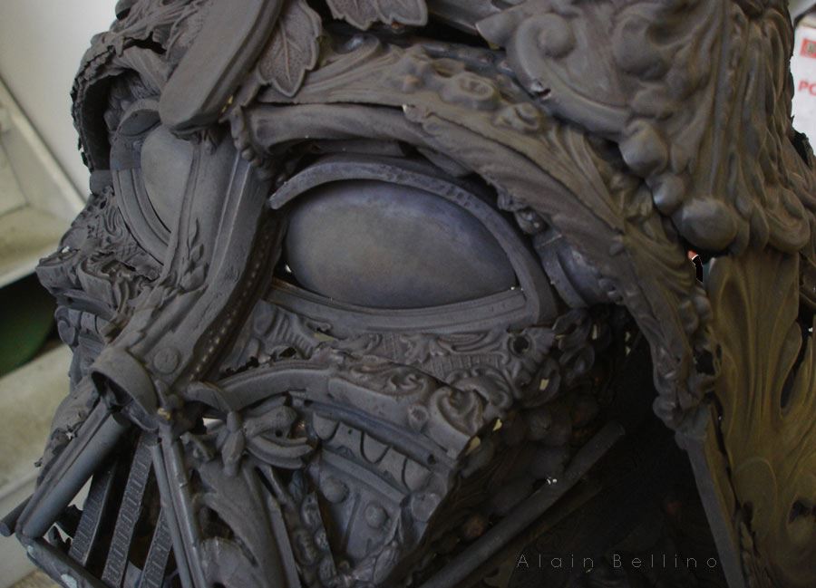 你可能到現在都還沒看過星際大戰,但你一定知道黑武士這號人物,法國雕刻家用金屬再次重現了黑武士的邪惡風範,但是用的材料居然是廢棄的舊流理臺,而眼睛的部位用的居然是舊湯匙,馬上讓人想到搞笑的鹹蛋超人(超人力霸王)了,兇狠程度整個大減阿!