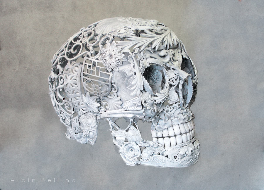 雖說骷髏頭看起來很陰森詭譎,但在 Alain Bellino 的詮釋下卻成了一尊尊華麗的魅影,每個細節都美得讓人移不開眼睛,在他的個人網站上有更多作品可以觀賞 Alain Bellino's Blog