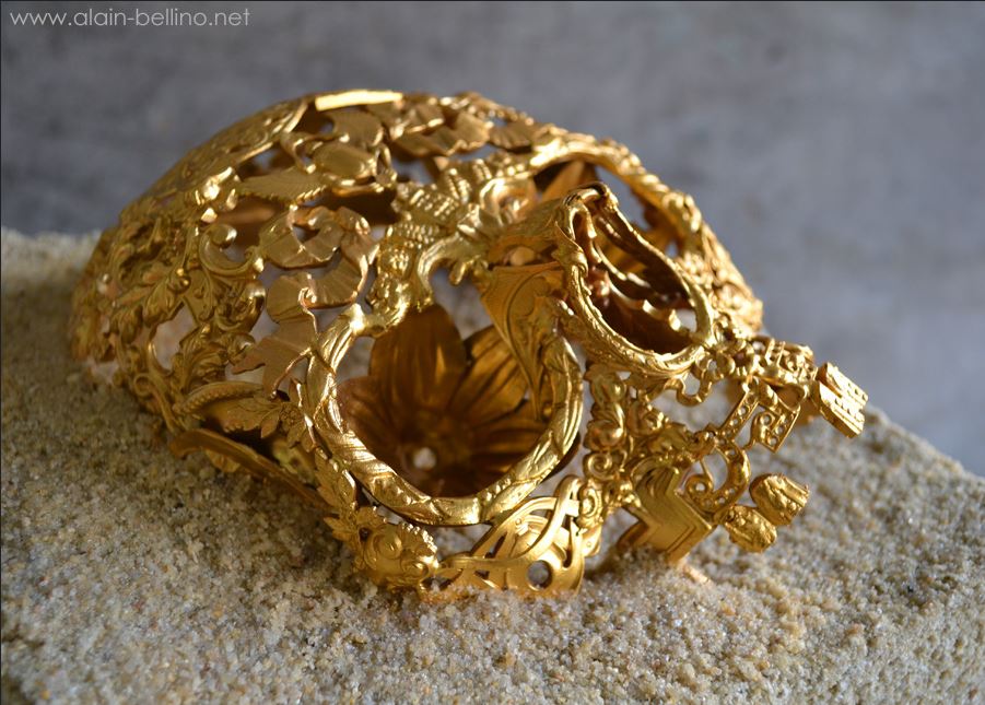 在 Alain Bellino 的作品中可以看到大量的骷髏元素,主要也是受到 Vanitas 藝術所影響,Vanitas 是一種藝術手法,象徵各種陰沉、憂鬱甚至鬼魅的形象,於是理所當然的骷髏頭就成了 Alain Bellino 最喜愛的主題,或許他會選擇打造黑武士頭盔,也是受到了這股代表黑暗力量的吸引囉!