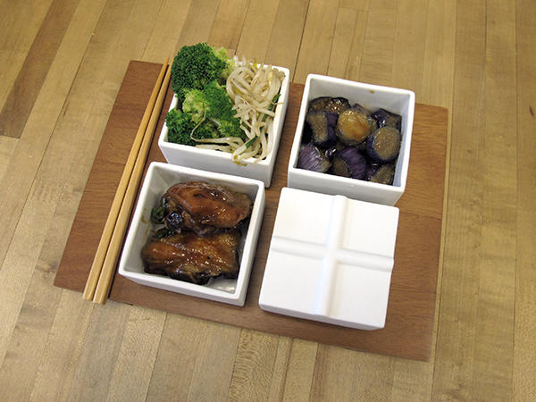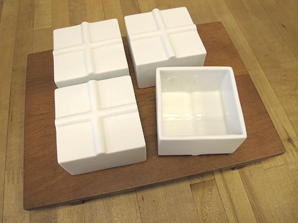 跟以往泡茶的杯子長得不太一樣,當泡好的茶倒進方形杯子裡時,忍不住思考該怎麼喝也變成品茗的一部分。除了喝茶,小小的方塊碟子當作小菜盤也很實用,深度夠深且樣貌好看,放在飯桌上當作開胃小菜或是作為下酒時的配菜盤都很適合,三個放菜一個裝飯,一人份剛剛好,吃飽喝足順便喝杯茶解油膩,每頓晚餐都變得令人期待。