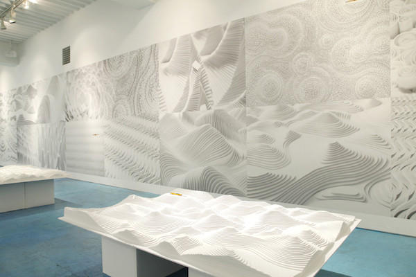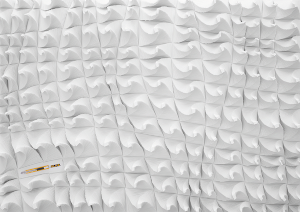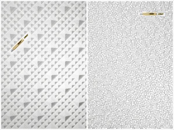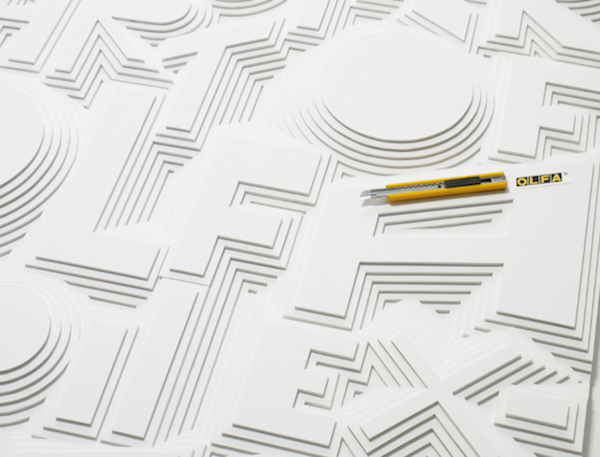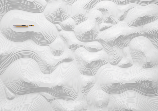 這系列海報是OLFA請到日本知名設計師八木秀人「操刀」,來展示自家的美工刀到底有多厲害~設計師與他的團隊成員們利用鋒利無比又滑順好使的OLFA美工刀在純白珍珠板上創作,雕刻出一塊又一塊的幾何圖形,從大到小整齊排列,看起來就像是小時候做的地理等高線模型超級精緻版。