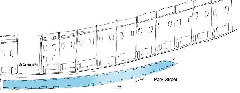 本身擁有傾斜坡道又是著名城區的公園街是放置巨型滑水道的絕佳地點,這個超酷的計畫已經經過Bristol市議會同意,目前正在 Ashton Court 試運行,預計會在今年5月4日正式登場。