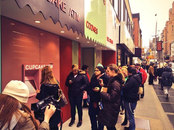 據說排隊的人潮多到橫跨了好幾條街,這大概是全紐約最受歡迎的ATM了吧XD