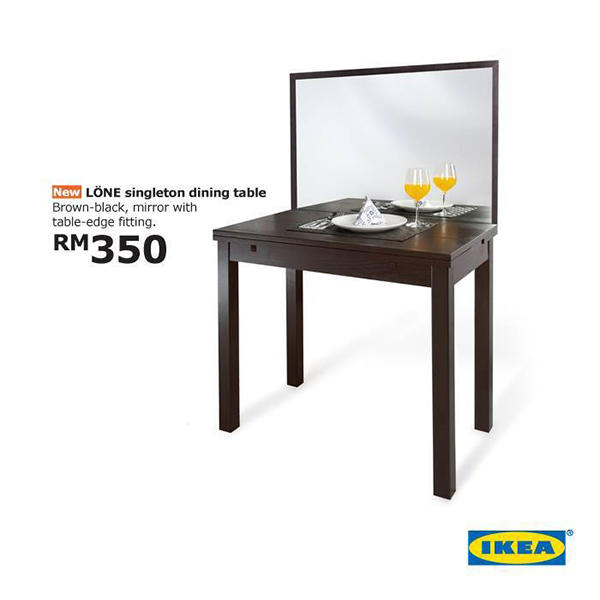 對於單身者來說,「孤單」、「寂寞」等負面情緒字眼變成是現代壓力來源之一,逐漸有許多行業開始推出針對單身者的服務,反而大受歡迎,像是小份的單人版餐點,或是個人的獨享套餐等等,直到最近 IKEA 也開始設計了一組專門給單身者使用的餐桌椅,貼心程度直上雲霄,雖然一張要價 Rm 350(大概台幣 2800) 實在超貴 ,卻獲得網友非常大的迴響。