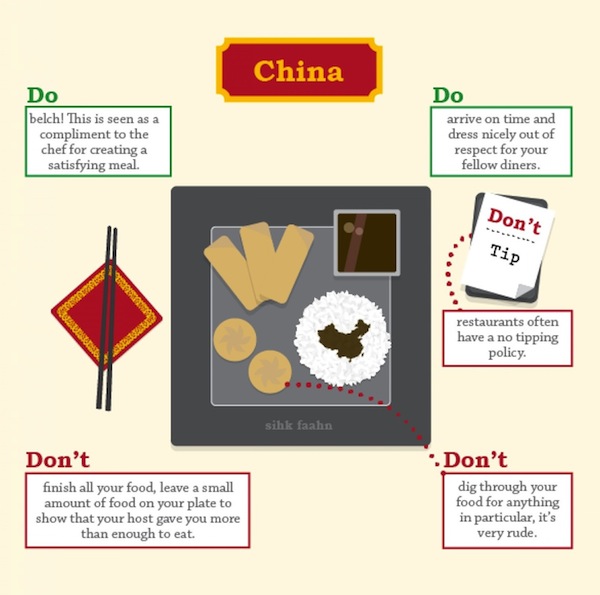 Don't:不要把把碗裡的食物都吃光,記得留一小口,代表主人待客慷慨