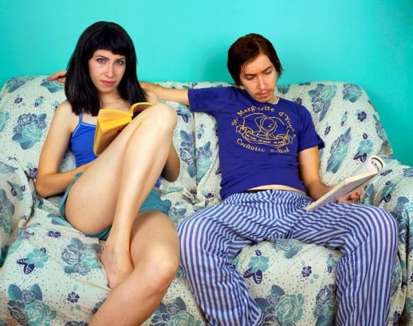 大家會如何解讀上頭這張照片呢?一對情侶或夫妻穿著休閒的服裝,坐在沙發上悠閒的閱讀,相信這樣的解釋應該不會有太多人反對,簡單照著所看到的來敘述。但若大編再告訴大家這系列攝影集名為「Alone Time」,那是否該好好的去思考這其中是否隱含了某種寓意呢?