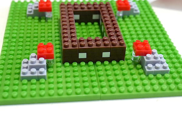 接下來的過程自然不可能一一講解,組裝的樂趣還是留給大家自行探索,大編的主要任務還是帶大家多看一些細節的照片才對。積木玩具最有趣的地方就在充滿了「變化」,玩具設計師為了整體精緻度與適時提高難易度,都會讓把一大塊面積切割成好多塊,像是四邊角落的灰色基底需要九格的部份,就被切割成四格、三格、兩格,為的是讓大家玩起來更有樂趣,不會有簡單裝上一塊就搞定一切的狀況。