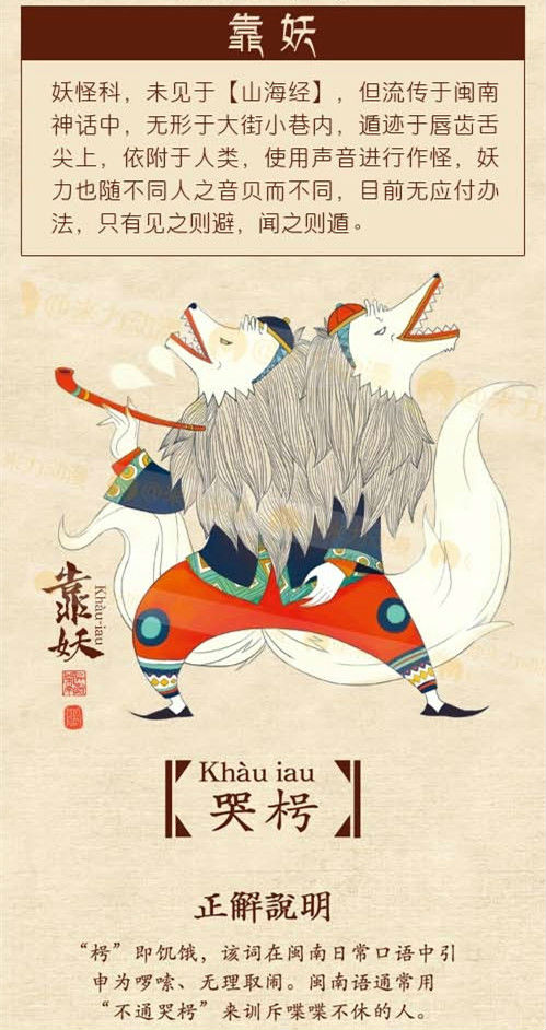 妖怪科,未見於《山海經》,但流傳於閩南神話中,無形無大街小巷內,遁跡於唇齒舌尖之上,依附於人類,使用聲音進行作怪,妖力也隨不同人的分貝而不同,目前無應付辦法,聞之則遁。