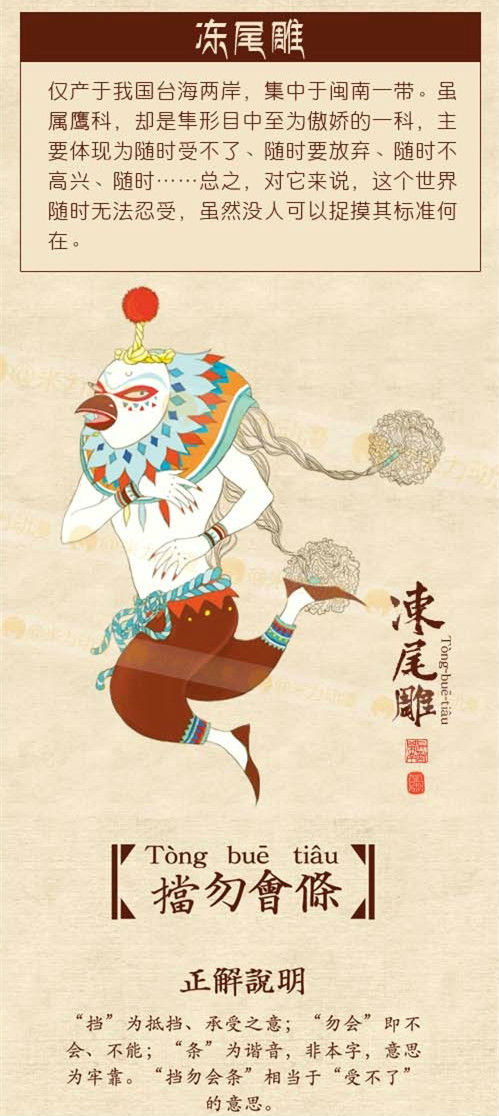 在中國語言學中被定位為漢語方言,發源自中國閩南的閩南語,不僅串聯了福建到台灣、新加坡和馬來西亞的華人地區,也是很有歷史淵源的語言,其精髓在於說話的時發音腔調,抓得準了,氣勢就會如洪水般奔瀉而出、鏗鏘有力萬夫莫敵(當然台語的本質還是非常優美的)。網路有人將閩南語中最具有"靈氣"的12組字彙挑選出來化為閩南12神獸,民間故事般的畫風和精準的人物剖析都讓人印象超深刻,你還覺得台語很土氣嗎?做人可不能忘了自己的根本,讓閩南12神獸來告訴你,什麼叫做「語言的力量」!