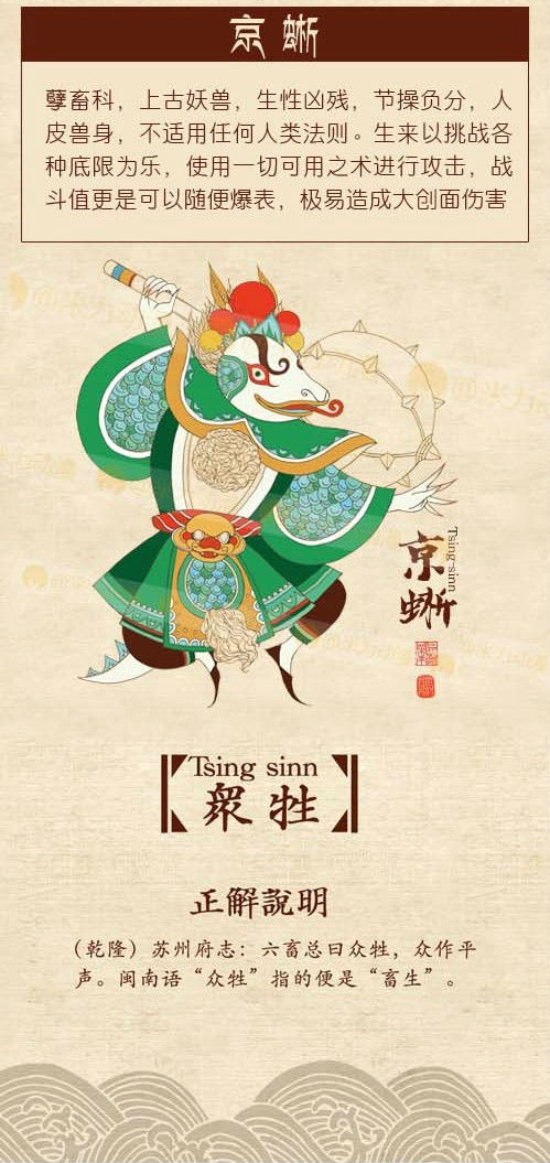 孽畜科,上古妖獸,生性兇殘,節操負分,人皮獸身,不適用任何人類法則。生來以挑戰各種底限為樂,使用一切可用之術進行攻擊,戰鬥值更是可以隨便爆表,極易造成大範圍傷害。