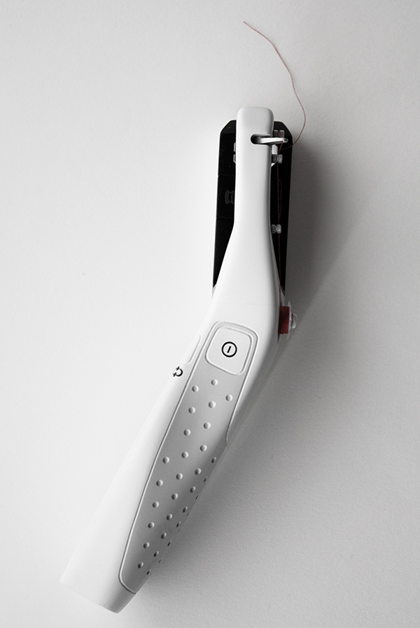 The Bernina 是一間瑞士的縫紉機品牌,他們分享了這台輕便的概念式手持縫紉器,將一般縫紉機必備的腳踏板去掉直接轉移到機台上,改用瞬動方式運作,一手扶著布料、一手按壓上方的按鈕,使用方式相當直覺,而且體積極為輕便,標榜可以帶著趴趴走,好收納不佔空間,三不五時就拿出來喀搭喀搭一下,感覺相當方便喔!