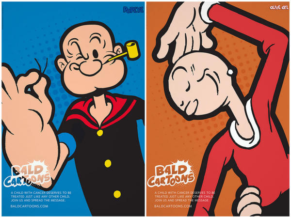 來自巴西的慈善醫療組織GRAACC與知名的卡通頻道最近共同策劃了一個感人的網路活動「Bald Cartoons」,在這個活動裡頭,大朋友的童年回憶,小朋友生活中的英雄,一個個卡通人物都沒了頭髮,他們不是和職棒球員泰山一樣有掉髮的困擾,而是自發性的把都剃光了,因為他們想和罹癌並接受化學治療的小朋友站在同一陣線,他們想告訴小朋友:「你並不孤單,也並不奇怪~」