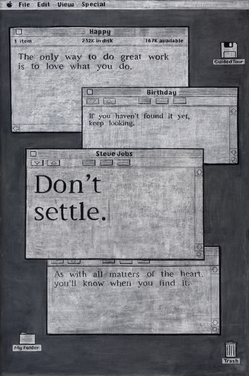 賈伯斯 Steve Jobs (源自 2005 年於美國史丹佛大學畢業典禮的演講片段):成就一番偉業的唯一途徑就是喜愛你的工作,如果你還沒找到,繼續找,不要妥協,當找到那個對的工作時,你的心就會告訴你