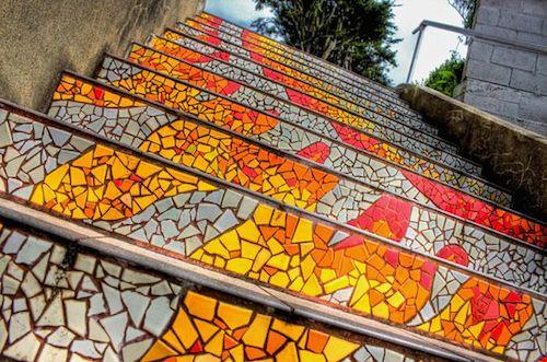 這座像藝術品般美麗動人的樓梯位於美國舊金山市的第16大道旁,一共有163階,其中每一階的立面上都有一幅獨立的馬賽克磁磚創作,若分別欣賞其中的圖案,或許只能瞧見顏色鮮豔,卻沒有主題的圖騰,當這些作品全都組合在一起,方能讓人感受到那震撼的視覺效果。一幅又長又巨大的馬賽克拼貼藝術作品使用超過2,000片手工磁磚分割成75,000片細件,並動用當地社區300多人的力量,耗時兩年半才得以完成。
