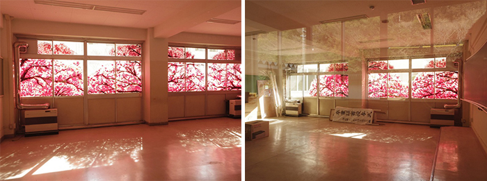 事情起源於日本大地震之後,各地相繼出現了一個名為「Okurie」的藝術項目,該項目的內容則是要在日本各地即將預計拆除的建築物上留下壁畫,藝術家 Yosuke Tan 就號召某高中的畢業生,重回即將拆除的舊校舍前,使用了 27 公升的顏料,在每間教室的玻璃上繪製上這些象徵純潔、勇敢與高尚的櫻花,紀念曾經的高中生活。