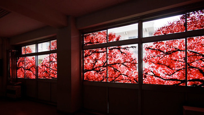 乍看之下似乎有些驚悚,但其實它所代表的,正是學生熱情怒放的高中生活,也是對即將拆除的校舍所作的最後紀念。先不說這些手印的驚恐程度,至少遠遠看過去真的是一幅幅美麗寧靜的畫面,相信不少人都曾經羨慕過許多日本作品內,所描繪那櫻花四處盛開的風景。試想老師粉筆遊走在黑板上的聲音,而教室窗外的櫻花飛舞旋落…,如果能在這樣的環境下上課,肯定是浪漫滿分啊!