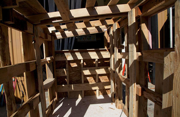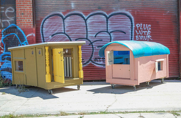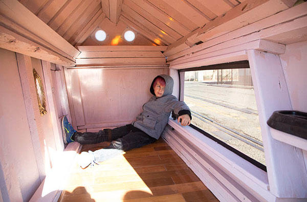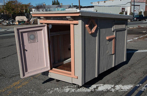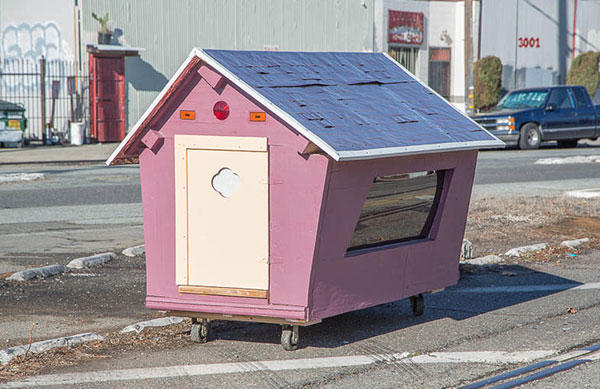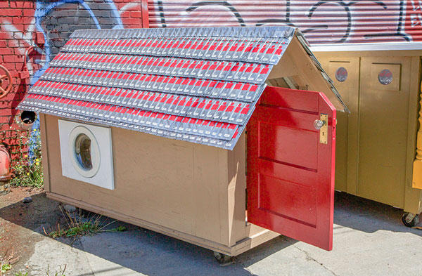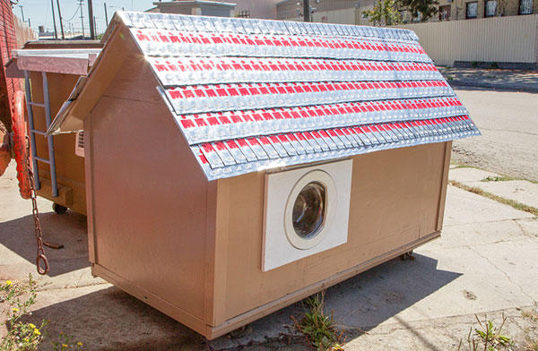 這些小小別墅打造上並沒有一定制式的方法,撿拾到的車門、冰箱門都可以當做牆壁,透明的碗、或是相框也可以當作窗戶,別墅的底部也加上了輪子,對於勢必要隨時移動的流浪漢來說,可以推動的房子是非常重要的居住因素,再加上有點傾斜的屋簷,下雨天遮風避雨的同時,落在上頭的水也可以輕易排除,雖然格局實在不大,但相信這些房子對於長期在外風吹雨打的街友來說,說不定是從流浪街頭開始住過最好的房子了吧!