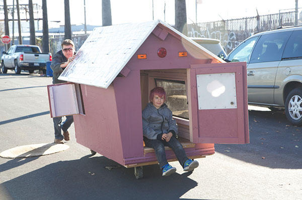 這名來自奧克蘭的藝術家,平時如果不是在撿垃圾,就是在前往撿垃圾的路上,但是他並非把垃圾收集在家中,等待某天可以使用的時機,而是篩選合適的材料,手工打造一間非常獨一無二,遮風避雨的迷你別墅;隨著別墅一間一間建造起來,他的創作也慢慢的被大眾關注,慢慢也有越來越多的街友願意加入幫他一臂之力,達到街友互助的效果。