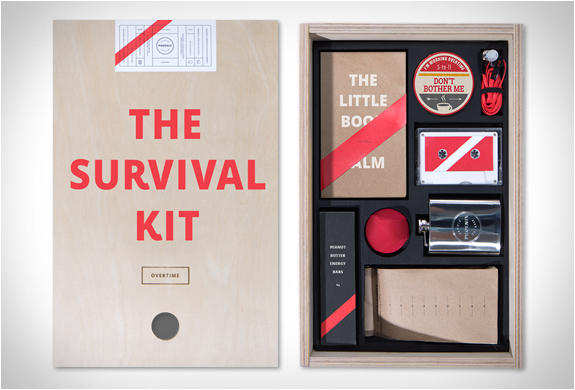 『加班用』:包裝裡面有一本使用手冊、一副耳機、一個“請勿打擾”的徽章、咖啡豆、一根花生醬能量棒、一瓶酒(上班喝酒好嗎!?)以及一顆壓力球,能夠輕鬆地應付需要加班的夜晚。