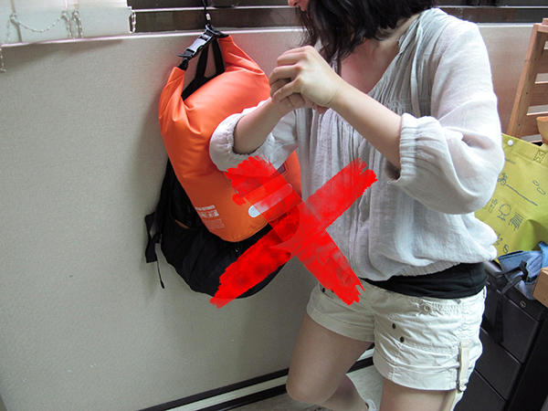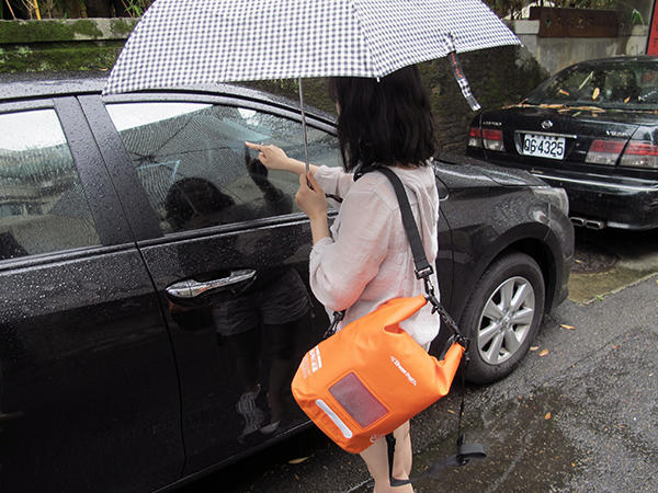 ▲建議包包收合大概往下折三次,才能達到最好的防水效果。