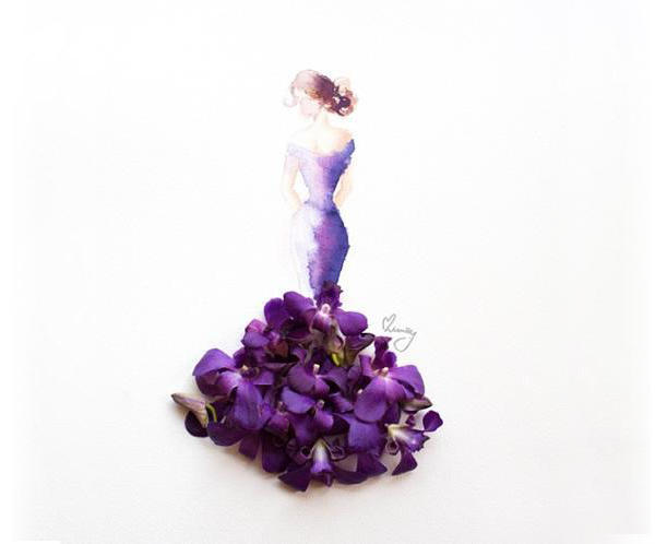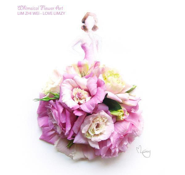 鮮花花束蘊含很多意義,既可以送給女性聊表心意,也可以讓新娘捧在手上,向外丟出象徵結束一個人的生活,如果把鮮花放到藝術家的手裡,則會變什麼樣子呢?新加坡藝術家 Lim Zhi Wei 將收到的花束,加上自己的創意概念,繪製出了一系列非常迷人、充滿浪漫氛圍的作品,藉著水彩亦虛亦實的特性,把女性柔媚難以捉摸的性格表現無遺,而立體的花朵更是讓這系列作品錦上添 “花”。