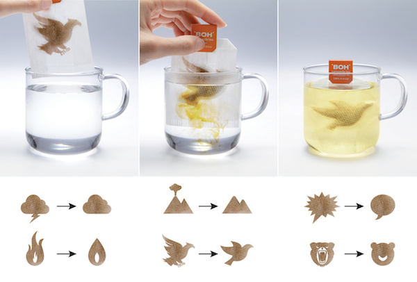 這包茶有多紓壓?泡下去就知道了!馬來西亞茶商品牌 BOH 以可食用墨水在茶包上印圖案,當熱水沖下去後,原本的圖案會慢慢化散開來轉換成另一個圖案,原本打雷的雲變成一朵祥雲、火山不噴火了、憤怒火鳥變成和平鴿,象徵他們家的茶相當舒壓,再大的火氣都能被安撫的妥妥貼貼,好像很適合隨時都快崩潰的苦命上班族喔!