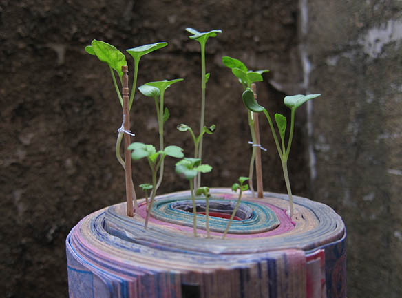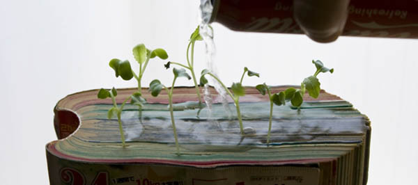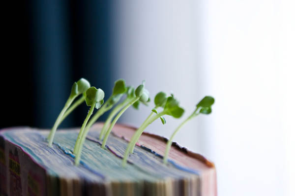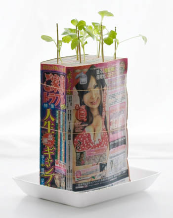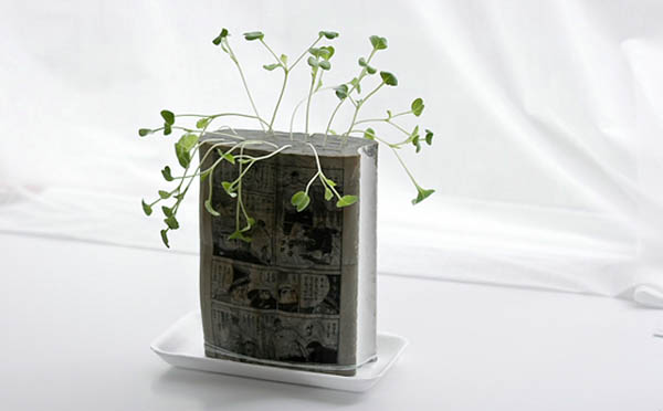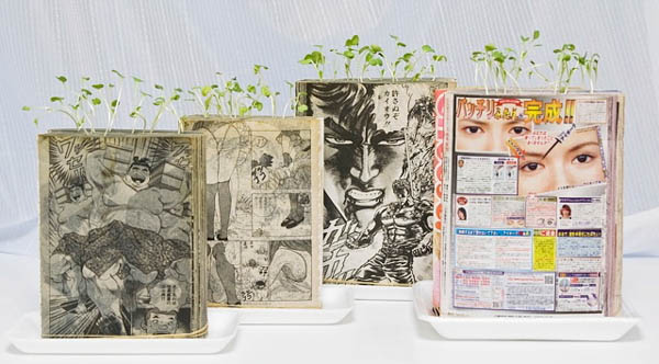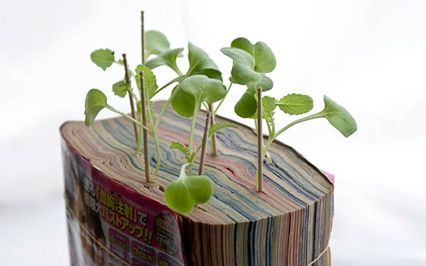 對於堆積如山的過期雜誌、老舊書籍,一般人不是賣到二手書店、捐贈給圖書館,就是選擇拿去回收賺錢。日本藝術家河地貢士(Koshi Kawachi)有不一樣的處理方法──把紙張當作土壤,種植蘿蔔苗!