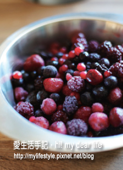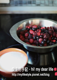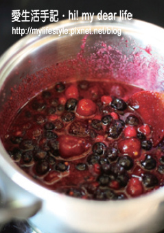 1、將各類新鮮莓果(或是冷凍的也可以)放入鍋中,開小火約煮10分鐘。