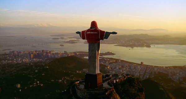 知名的英國線上博弈公司Ladbrokes最新的廣告就將腦筋動到耶穌像頭上,巧妙的運用足球場上經典的慶祝方式,讓耶穌像與足球做連結,告訴大家連耶穌都開始瘋足球了,你怎麼能不來投注狂熱呢?