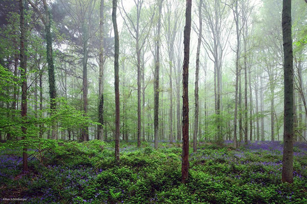 封面圖裡美麗得就像電腦後製一樣的藍色森林出自攝影師 Kilian Schönberger 之手,Hallerbos 森林就坐落在比利時 Brussels 往南開車約 30 分鐘的地方,春天一到就會長滿滿滿的風信子,乍看就像鋪了一片藍紫色的毛絨地毯,留下美麗照片的攝影師 Kilian Schönberger 再三表明他完全沒有電腦調色,森林本尊甚至還要更藍,尤其在清晨時超像電影魔戒裡的景色。