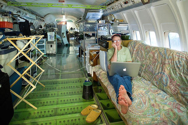 飛機裡有廁所、浴室、客廳、床鋪,一般房屋該有的設備在這裡一項不少,雖然空間小了一點,不過特殊的度假氛圍的確幫這棟「房子」加分不少。而退休後最大的優點便是有了相當多的時間,因此飛機裡頭的改造大多都由Campbell親自動手,並且有好朋友們的大力幫忙,省下了不少工錢,更多了一份成就感。