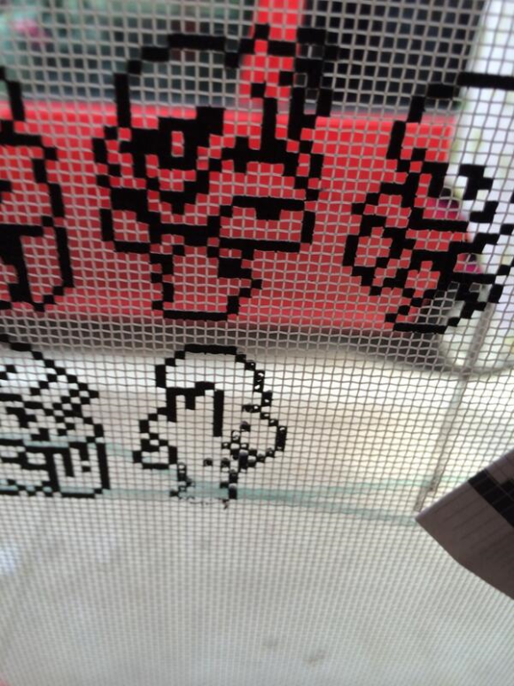 你沒看錯,這真的是台灣人最熟悉的紗窗,原本是普通的家庭用品,只有在過年大掃除時被媽媽逼著去洗紗窗才會被關注,現在也有機會搖身一變成為你家最炫的空間裝飾品,前提是你要夠有耐心才行!日本 Twitter 上有個人把紗窗上的孔格想像成位元,用玻璃顏料將自己喜愛的太空戰士角色畫在上面,成就一幅最浪漫的夏日畫作!