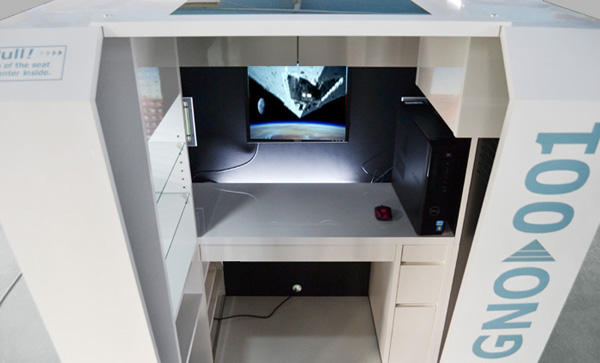 被稱為「大人心安的秘密基地」完全其來有自,傢俱配備有一張大型的沙發座椅,加上上下左右通通封閉的牆面,當椅子順著軌道滑進座艙後,就正式進入自己的世界裡,可以專心讀書、看電影、打電動 看看謎片 等等,配備也超級齊全,可供收納的許多層抽屜、壽命較一般燈泡更長的 LED 燈,也不用擔心空氣不足,因為該有的透氣窗也都有,只不過如果尿急的話還是要出來就是了XD