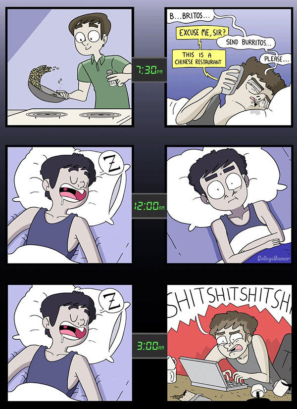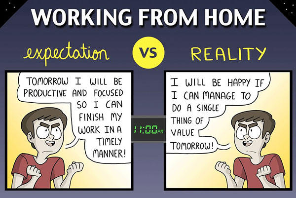 網站 collegehumor 將大家幻想中的 SOHO (或是也可以說是 SOHO 自己理想中的生活)畫成對照表格,如果你也正好在家工作,來看看有沒有中招吧 XD