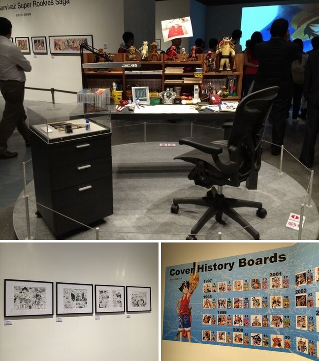 多幅漫畫產生過程中挑選出的原畫作品,配置現場特別播映的彩色原稿製作記錄片,中間更陳設作者尾田榮一郎作畫時的辦公空間,讓觀眾親臨感受《ONE PIECE 航海王》誕生前後的瞬間。另外,歷史牆上還可一次遍覽自 1997 年起,原作刊載至今的多部封面記錄。(Photograph by MOT/TIMES)