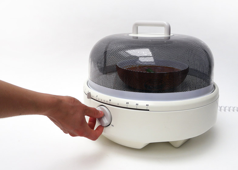 自從 1967 年至今微波爐的輪廓和大小幾乎沒有變過,連電鍋都有發展出大中小數種尺寸了,為什麼微波爐不行呢!倫敦 Kingston University 的畢業生 Jake Rich 把腦筋動到這款家電上,改掉它維持了四十多年的方型金屬箱外型,開關門轉化為圓頂式遮罩,整體體積稍微縮小,甩脫笨重感後看起來既輕巧又可愛,想必單身族和外宿族都會相當心動吧!