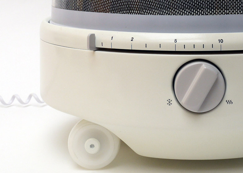 Jake Rich 把他的改造作品命名為《Mediumwave》,外殼材質為聚丙烯PP,半透明的蓋子仔細看會有細細的金屬格網,就和原本的微波爐一樣,橫向軸調整加熱時間,轉紐則可調整火力強度,轉盤的尺寸略同於一般稍大的盤子,由於體積減小了不少,相對來說就很容易搬動了,底部附有小輪子,在空間不大的廚房中依照需求輕鬆移動。