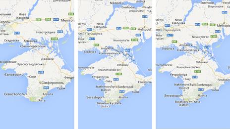 大眾比較熟知的領土、國家從屬問題包括約旦河西岸(West Bank)、台灣以及最近新聞上沸沸揚揚的克里米亞半島(Crimean Peninsula)。在克里米亞半島的處理上,Google Maps 將地圖分成三種版本。從烏克蘭或俄國網站登入會獲得不同結果,前者顯示克里米亞為烏克蘭的一部分,後者則用一條粗線將克里米亞隔離,至於國際使用者的版本這條線則用虛線顯示為爭議地區。