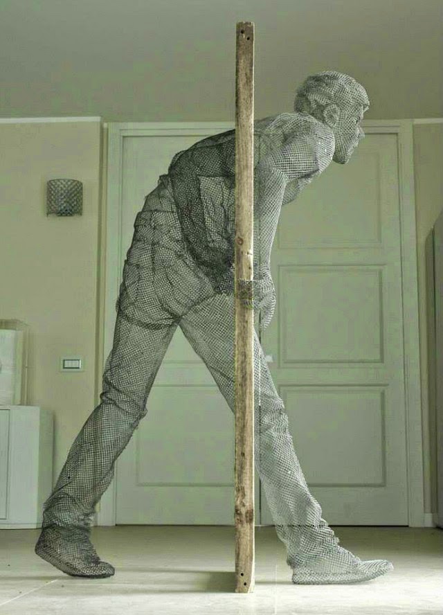 光是看到這隻手,就已經能感受到作品的力道了,畢竟鐵絲網可算不上多柔軟的材質,更不用說是模擬人體的輪廓曲線了!來自義大利的 Edoardo Tresoldi 從事舞台佈景設計,平常工作常常需要挑戰各種道具製作項目,所以這對他來說並沒有造成太大障礙,反而熱衷於透過這樣的創作模式去揣摩人體的動作和情感之間的關聯,讓冷硬的金屬也能表現出動態與情緒,是相當成功且令人驚豔的雕塑作品。