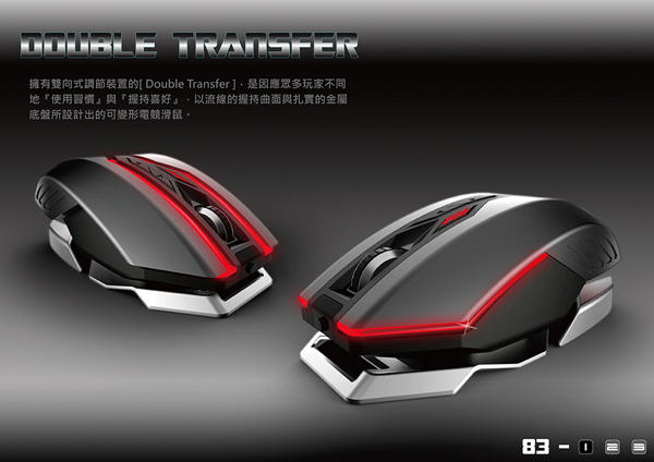 在千名網友支持下誕生了滑鼠設計比賽的人氣獎得主,造型參考了武士鎧甲設計,並考量電競玩家常時間使用,點及彈片上設計定位溝槽,主體設計有導汗溝槽,即使長時間遊戲對戰也能維持點擊正確性和握持舒適度
