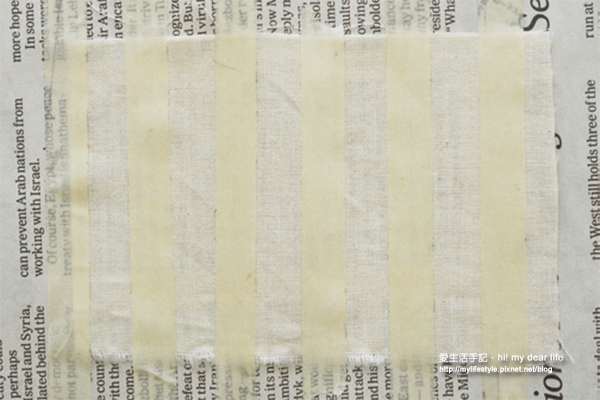 1.以紙膠貼出間距相同的直條紋路,就可製造出直線條。