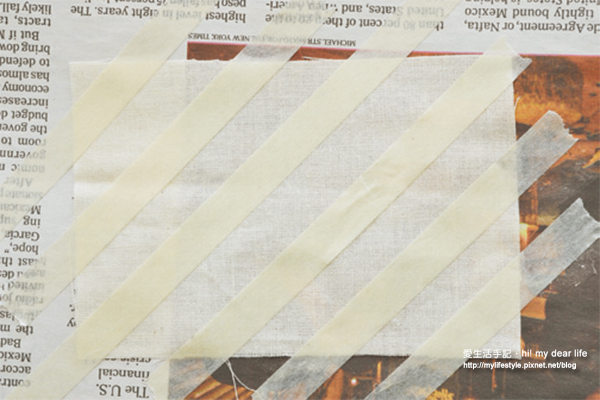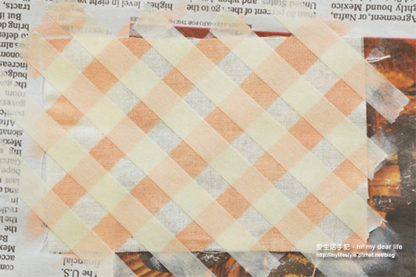 2.用紙膠帶以十字交錯的方向遮蔽,拓印後會變成一個個小方塊。